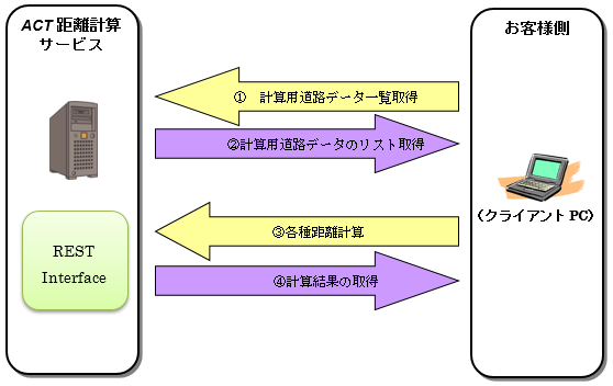 以下は、「ACT距離計算サービス REST API」を使用して距離計算サービスを呼び出す一般的な手順です。